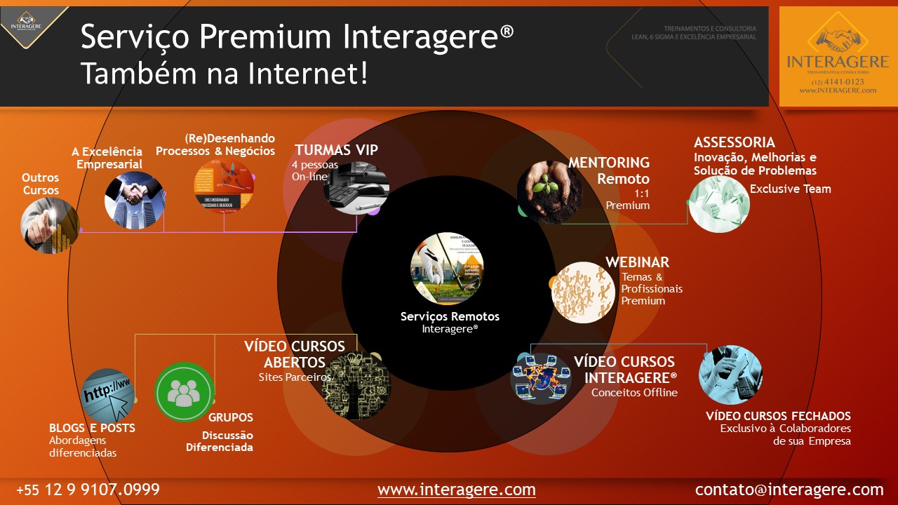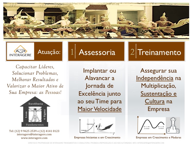 Além da metodologia Premium em Lean, 6 Sigma e Excelência própria da Interagere, com retorno do investimento já a partir do primeiro mês, maior retenção de Talentos e multiplicação na empresa, hoje atendemos também como multiplicadores homologados na metodologia interna da empresa cliente.