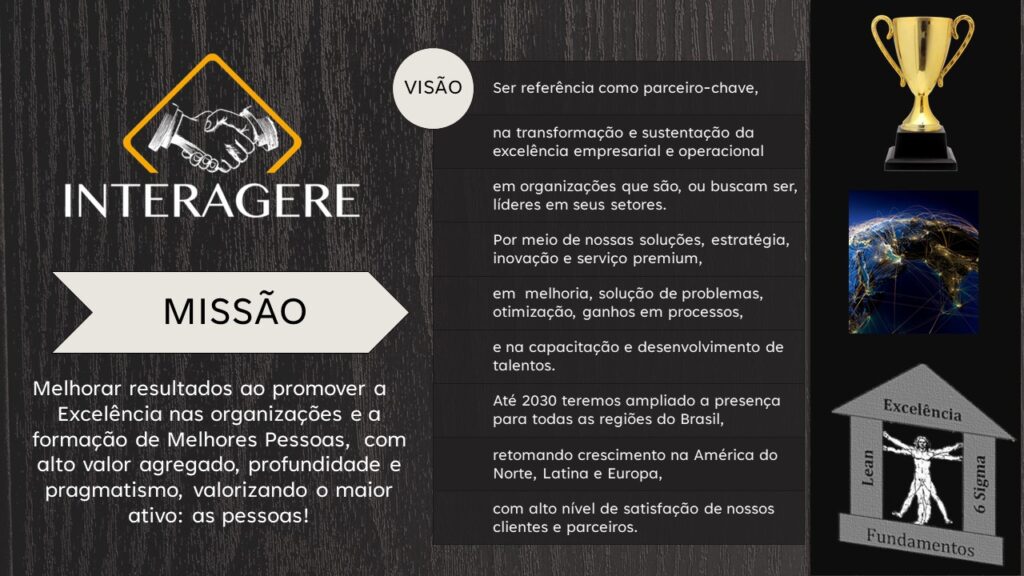 Melhorar resultados ao promover a Excelência nas organizações e a formação de Melhores Pessoas, com alto valor agregado, profundidade e pragmatismo, valorizando o maior ativo: as pessoas!