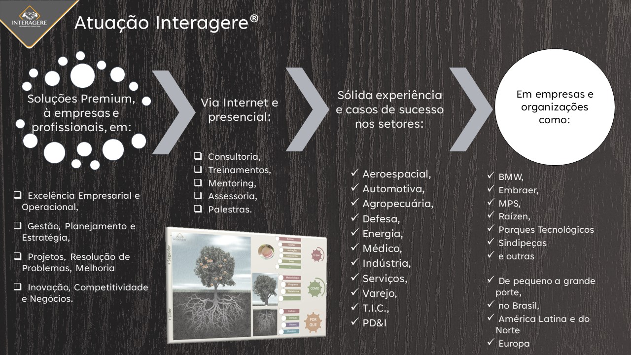 A Interagere promove melhores resultados e ganhos diferenciados, com a transformação e desenvolvimento de excelência em sua empresa, processos e equipes, no Brasil e no exterior,