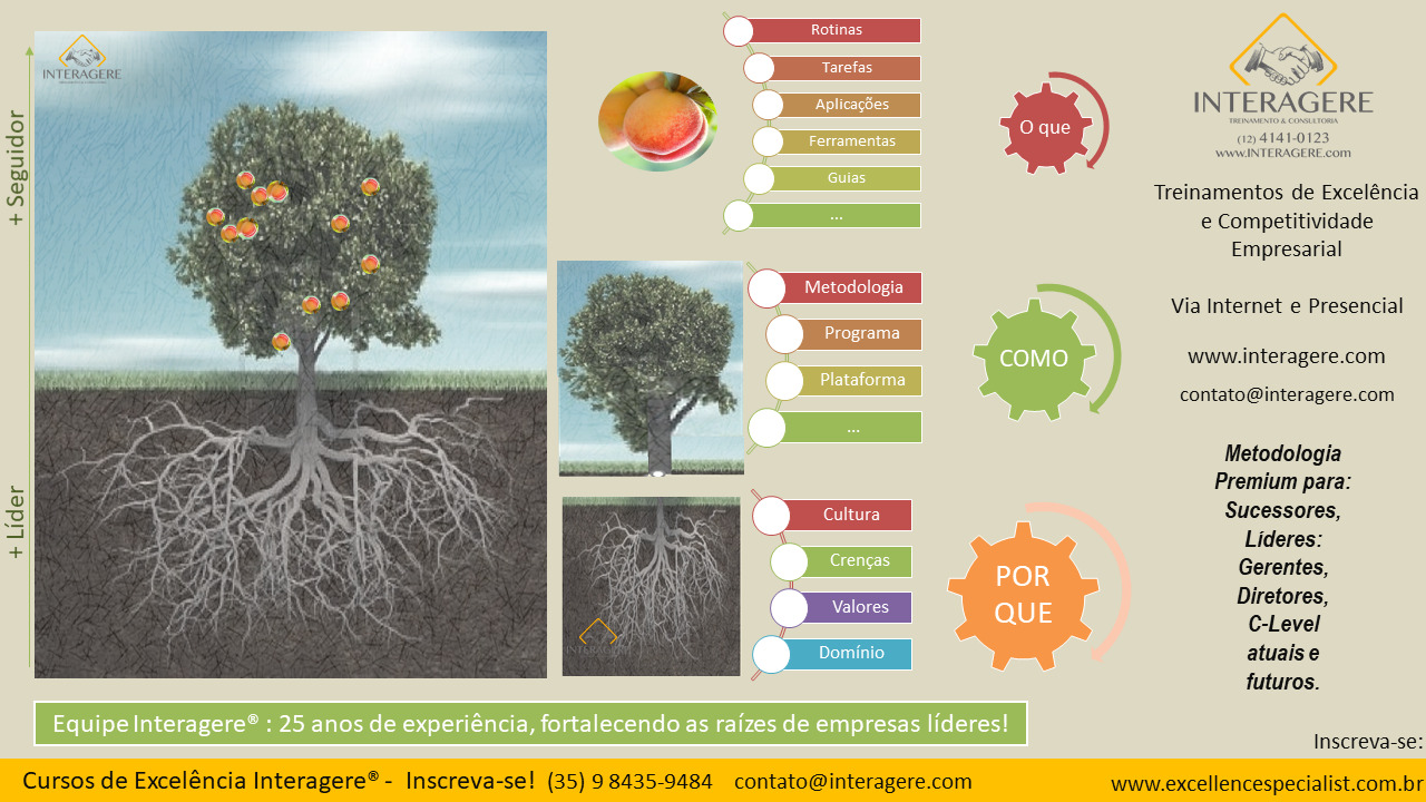 Assim, a capacidade e nível de desempenho exclusivos para sua empresa, são obtidos fortalecendo suas raízes, troncos e ramagens, de forma a assegurar que assuma a liderança ao invés de serem seguidores em seu mercado, atingindo esse nível de desempenho, da equipe e da empresa, a que chamamos de: excelência.